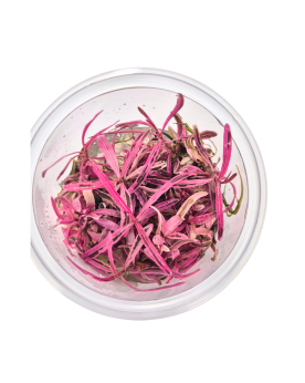 Cette variété se distingue par ses feuilles fines et ondulées, aux teintes allant du rouge brun au pourpre selon les conditions de culture. Son format miniature et son port dense en font un excellent choix pour les aquascapes détaillés, notamment en premier plan ou sur des éléments décoratifs.
