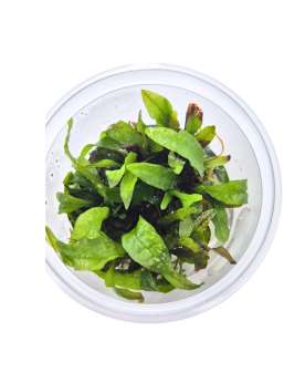 Cette variété se distingue par ses feuilles allongées aux reflets rouge foncé, bronze et parfois violacés selon l’éclairage et les paramètres de l’eau. Son aspect légèrement ondulé et sa texture robuste en font une pièce de choix pour sublimer un aquascape avec des contrastes riches et naturels.